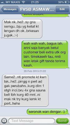 Sms taip "SAUNA BELT" dan hantar ke "0126471869"